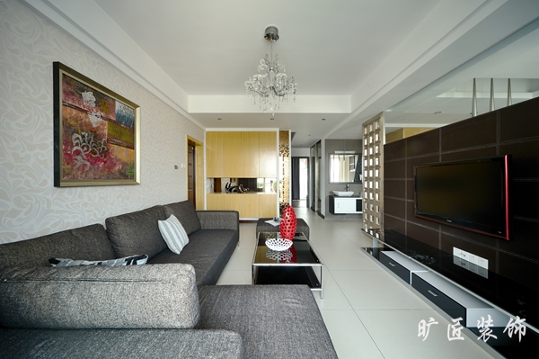 装修整体定位为现代风格,厨房与餐厅融为一体、有机联动,使用更加宽敞、灵活。餐厅与客厅的隔断采用了一个半高墙,顶部玻璃的运用,让整个视觉空间不仅产生了延续性,又能够起到阻隔厨房油烟的作用,使整个房间既美观又实用。入户的空间,无数个画框汇聚成了一组屏风,与电视主背景浑然一体,彰显了主人的豪迈情怀,同时,油画框的质地与背景的皮革突出了鲜明的现代元素,适当的浅色木纹又增添了家的温馨。