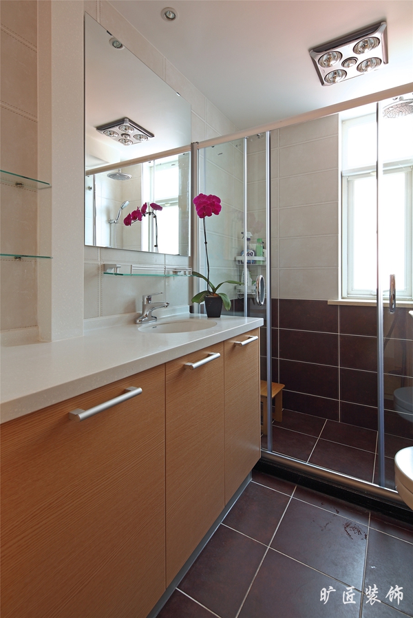 如果要评价这间居室,用功能强大来形容它简直再适合不过了。首先我惊叹于设计师充分利用了每一个墙面,把墙面的储物功能发挥到了极致。客厅和餐厅打开一个门洞做出半堵墙来用作隔断,充当隔断的同时又可以储放酒水或者一些精致的摆件,能在两个过渡区域中间做出这样的设计无疑是锦上添花的一笔。餐厅旁的多功能室,可以作为泡茶室,亦或书房,或者会客厅,榻榻米的处理方式给居室增加了一些情趣性,同时墙面又被很好地作为一面既可陈列又可储物的多功能墙面。厨房的形态组合为经典的L型厨房,设计师完全站在了住户的角度,有烟道的地方设置炤台,有窗的地方设置洗手盆和切菜处,完全符合厨房方案中的金句“宁可改炤台,不可洗无光”。卫生间干湿区分离,同时洗手台下面的柜子又可以储藏大量的清洁及洗浴物品。过道处的墙面和柜面相结合,储物空间又多了一些,玄关处剪影和LED灯的光效打造出现代感十足的装饰面。客厅的亮点在于它的电视背景墙面——荷韵!山水画并不只是以画为载体,墙面也可以彰显它的美!喜欢茶几上的两只小青蛙,空间的错位让人有一种从画里跳出来的既视感,整个画面顿时灵动起来了,好像只要有风,荷叶就会随风摇曳。